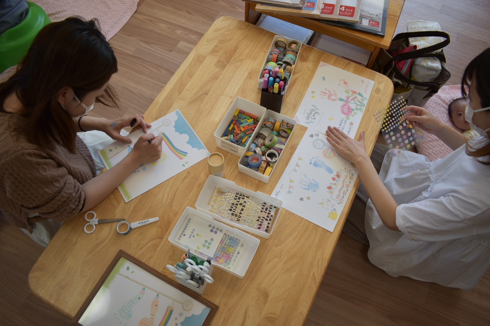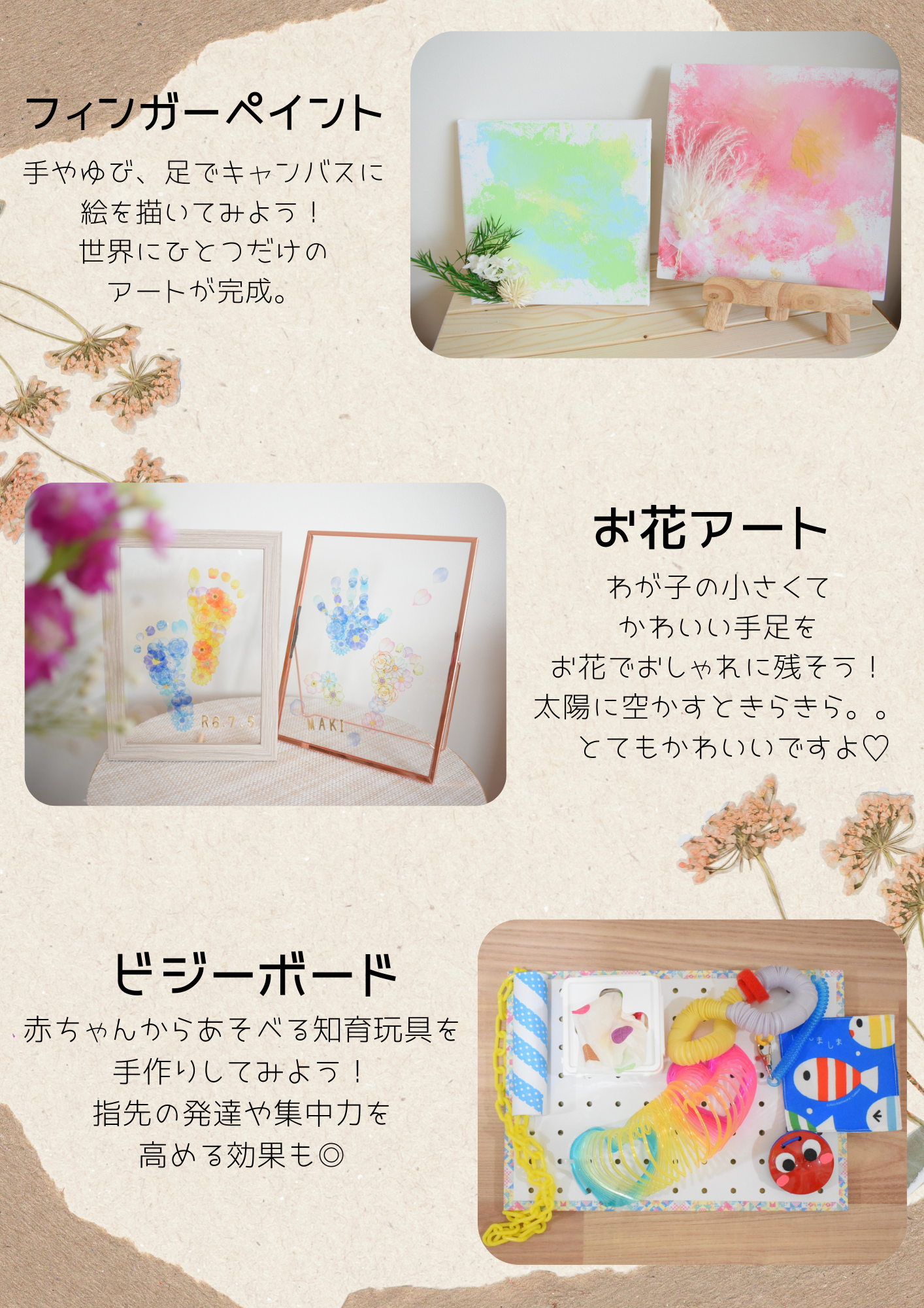 大人気!ペタペタアートの様子。わが子の可愛い手足をぺったんして飾り付けをします。